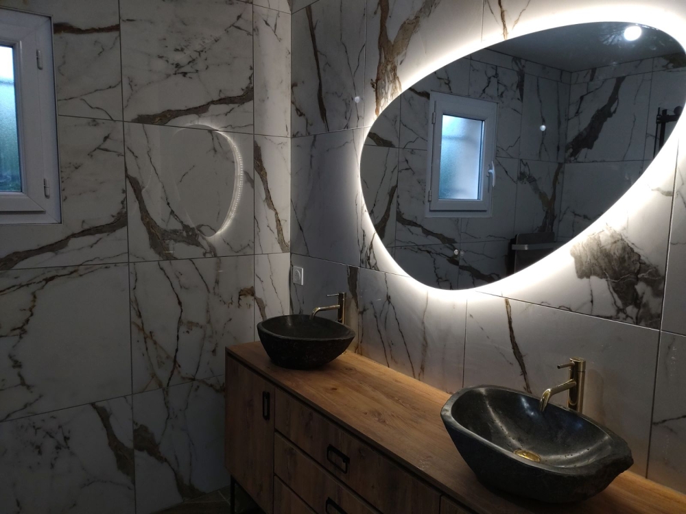 Rénovation salle de bain plomberie et électricité effectué par l'entreprise B2G ELECTRICITE dans un village proche de CHALAMONT .